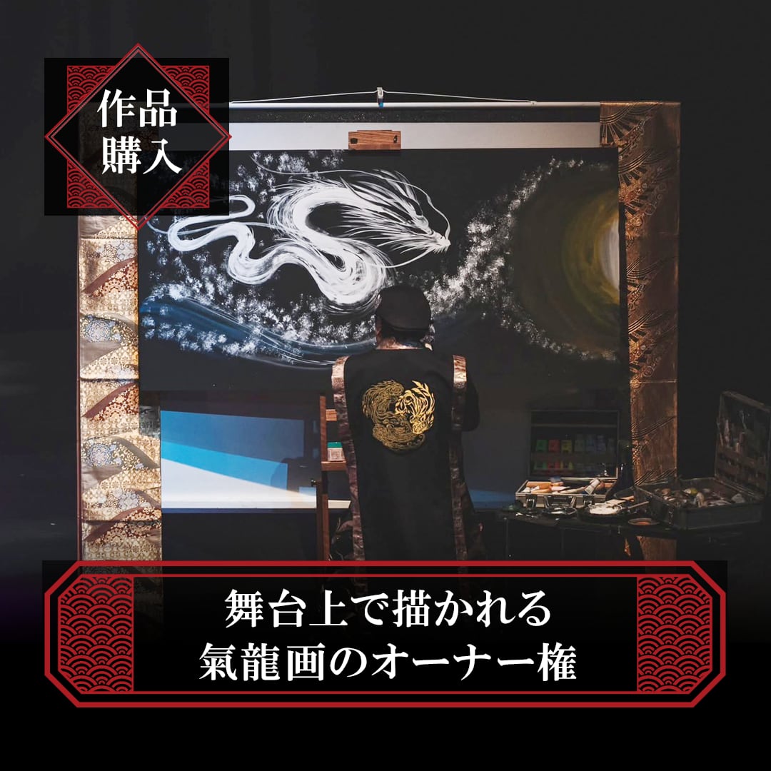 一期一会の演奏と共に舞台上で描かれた唯一無二の氣龍画のオーナー権です。(例:縦90cm×横180cm)